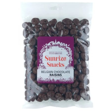 Sweet and juicy jumbo raisins covered in Belgian chocolate.